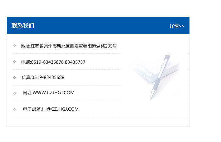 地址:常州市新北區友邦商務大廈1幢16、17層  電話:0519-85101652  傳真:0519-85112595  郵編:213022  網址:www.cz-jiayue_cn.anchun114.com  郵箱:xiajifengaa@163.com